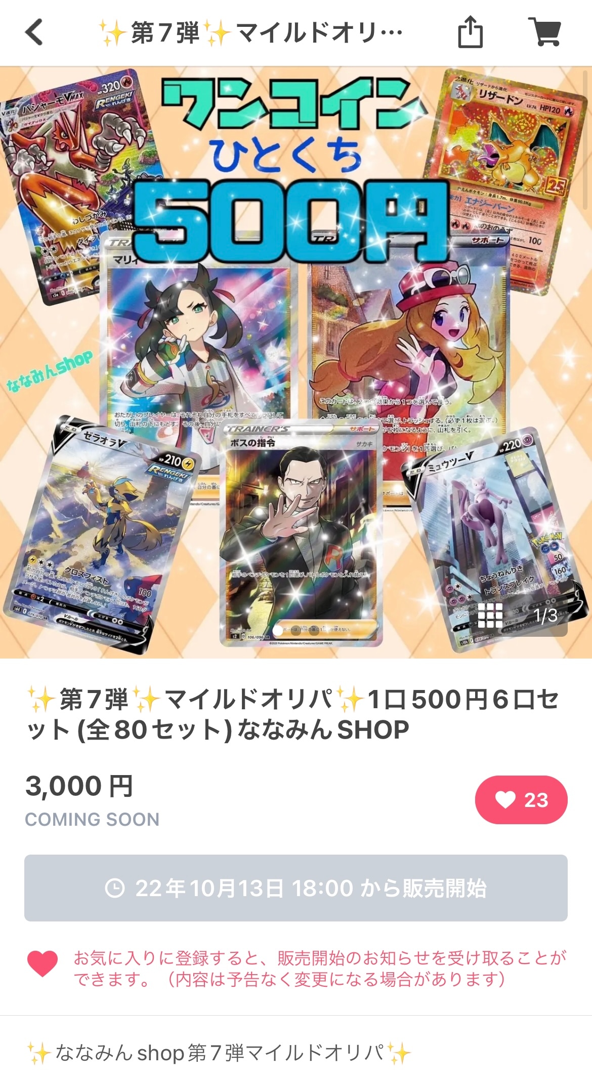 先程、販売開始予定したオリパの日付を間違えてしまい大変申し訳ありません🙇♀️🙇♀️